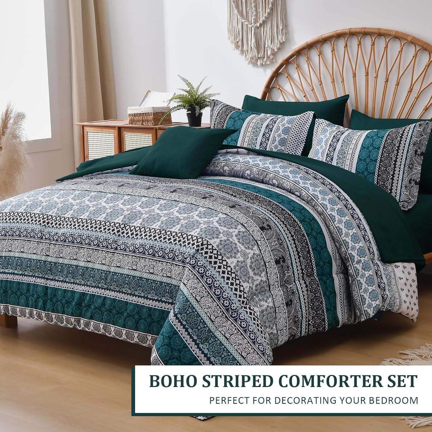 imageCottolester Boho Comforter Set Queen Size8 Piece Bed in a Bag Bohemian Striped Bedding Quilt SetPurple Paisley Floral Comforter and Sheet SetSoft Microfiber Complete Bedding Sets for All SeasonEmerald Green