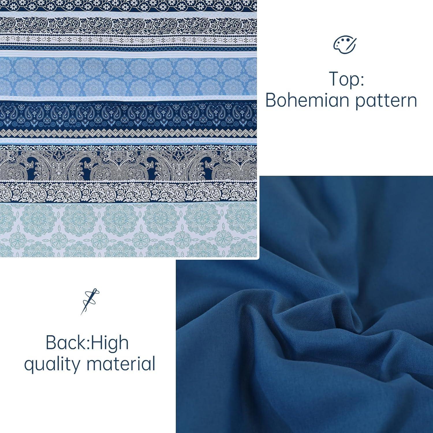 Cottolester Boho Comforter Set Queen Size,8 Piece Bed in a Bag Bohemian Striped Bedding Quilt Set,Purple Paisley Floral Comforter and Sheet Set,Soft Microfiber Complete Bedding Sets for All Season(Navy Blue)